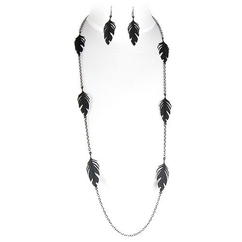 Product Brand : PammyJ NecklaceProduct Name : Black Tone Long Feather Necklace and Earrings Set Fashion Jewelry